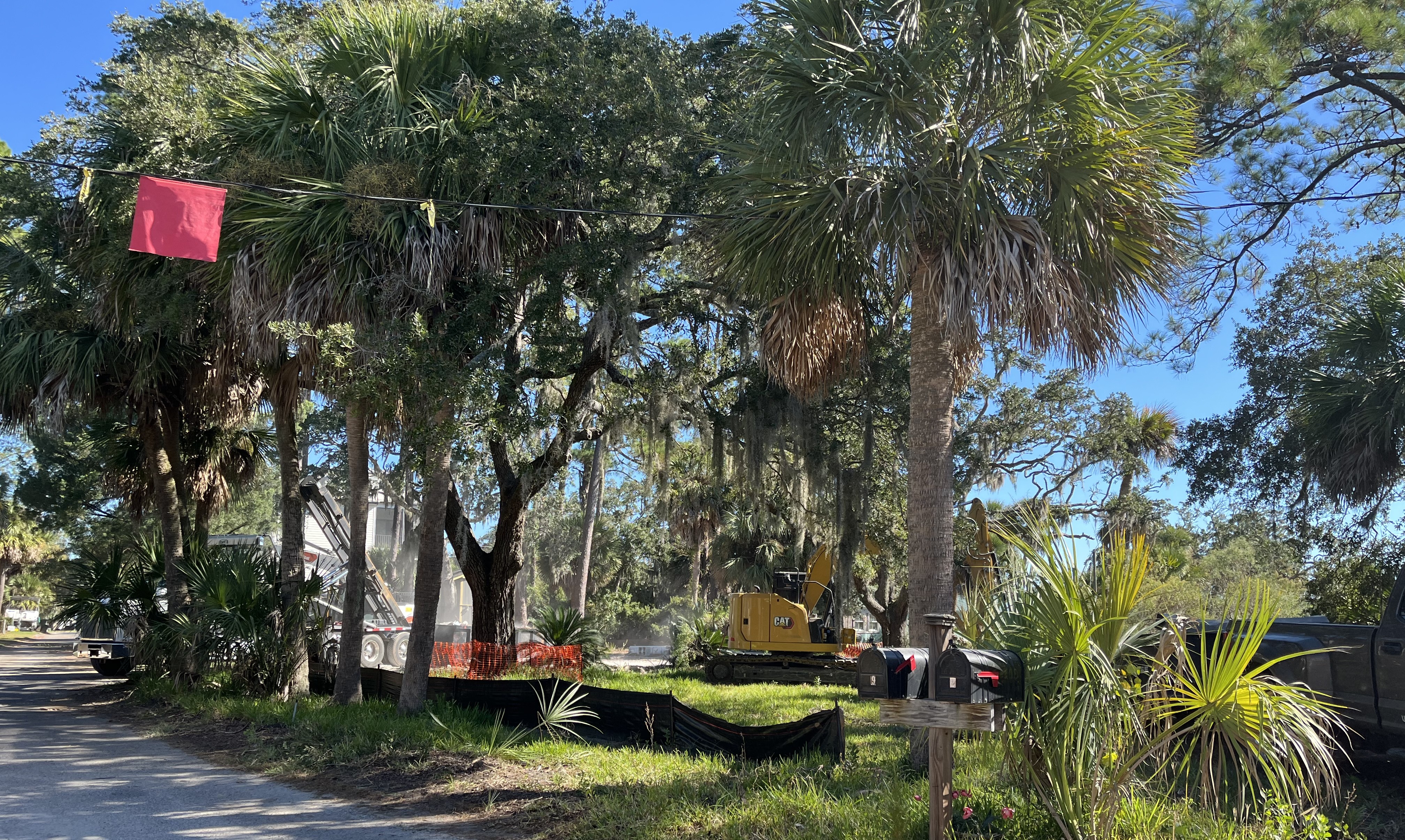 The county's sidewalk contractor, Sandhill ALS Construction, has started tree removal along Alljoy Rd. Once the removal is complete, the silt fencing will be installed.